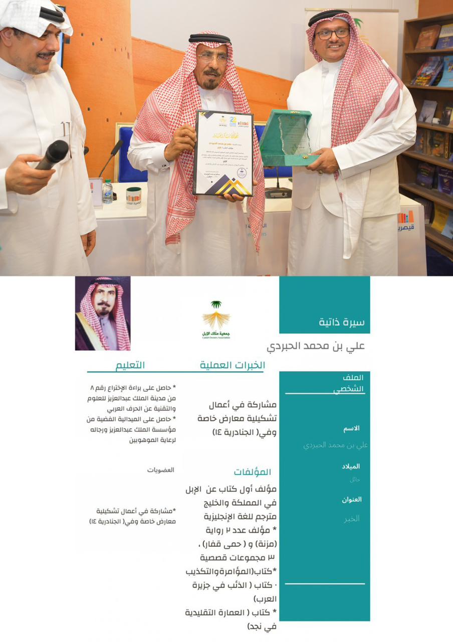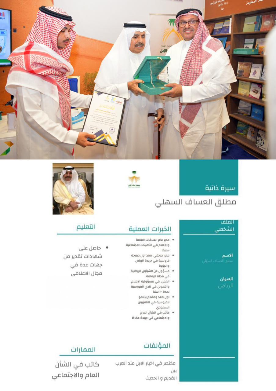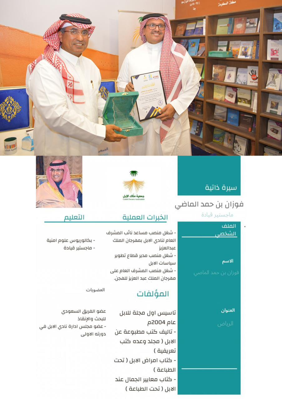 بحضور أ .عبدالله بن عوده رئيس جمعية ملاك الإبل ، والأستاذ عبدالرحمن بن احمد الحمدان وبرعاية مكتبة الرشد .