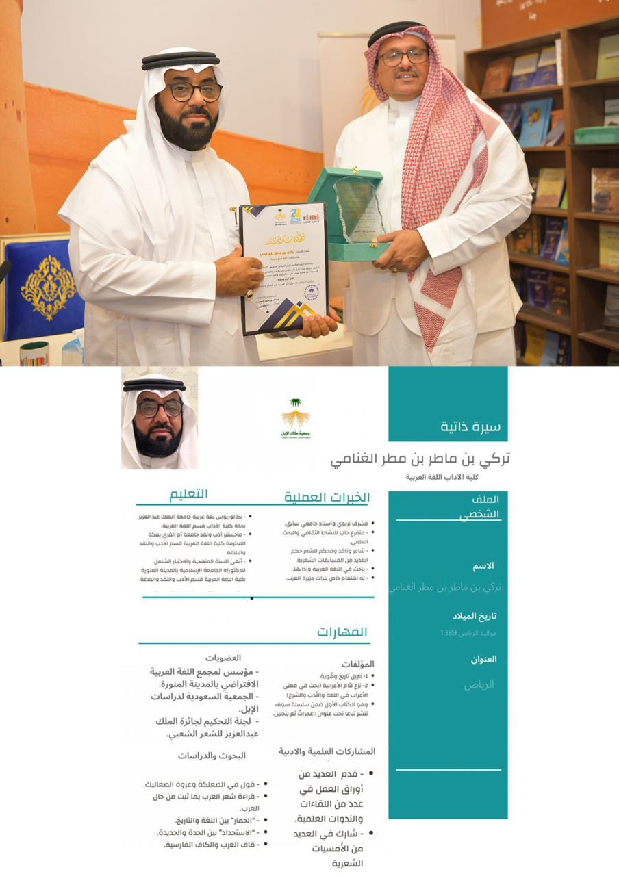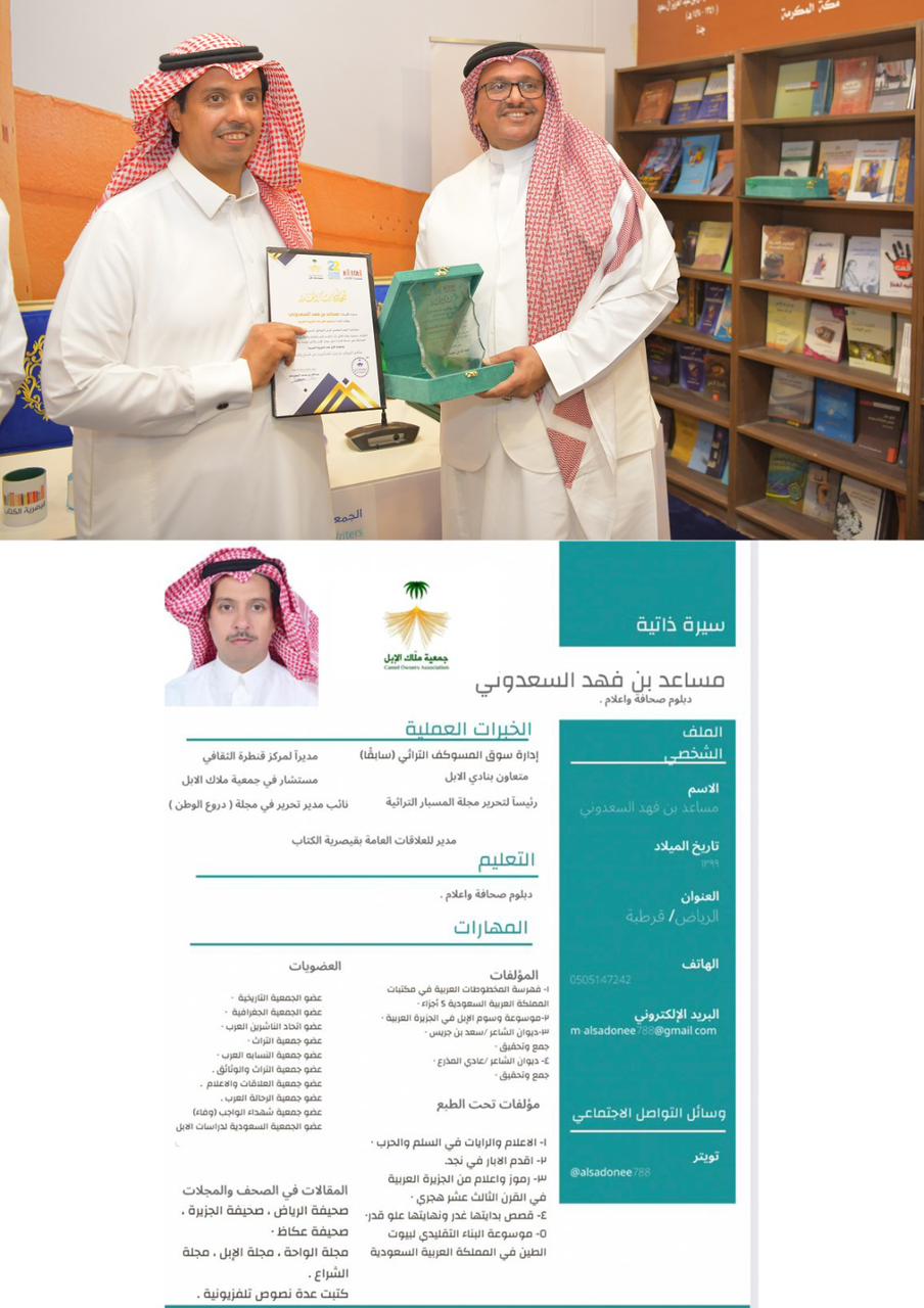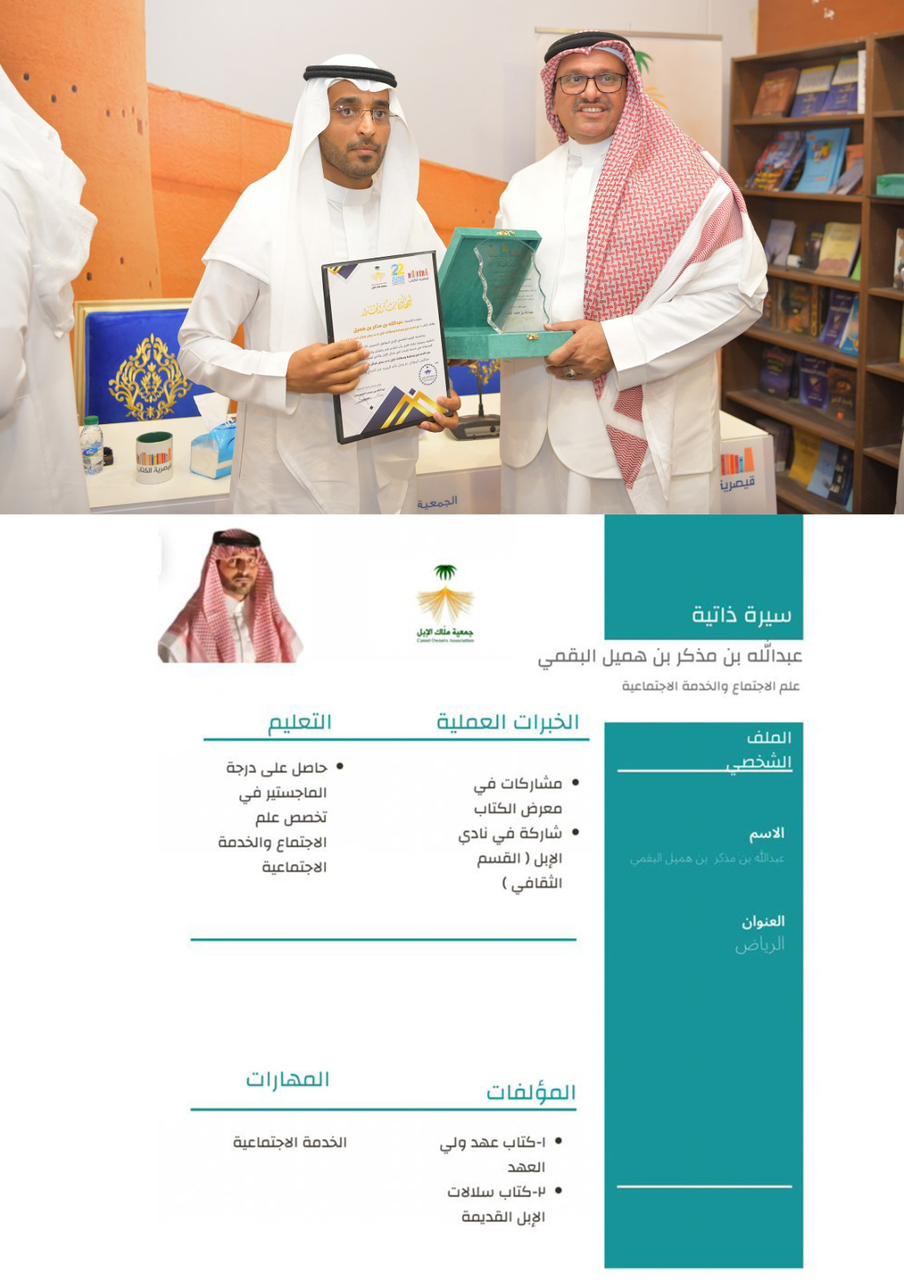 بحضور أ .عبدالله بن عوده رئيس جمعية ملاك الإبل ، والأستاذ عبدالرحمن بن احمد الحمدان وبرعاية مكتبة الرشد .